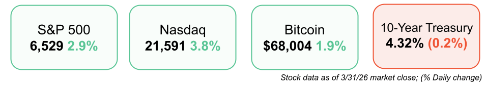 Stocks surged as hopes for a potential off-ramp in the Iran conflict lifted sentiment
